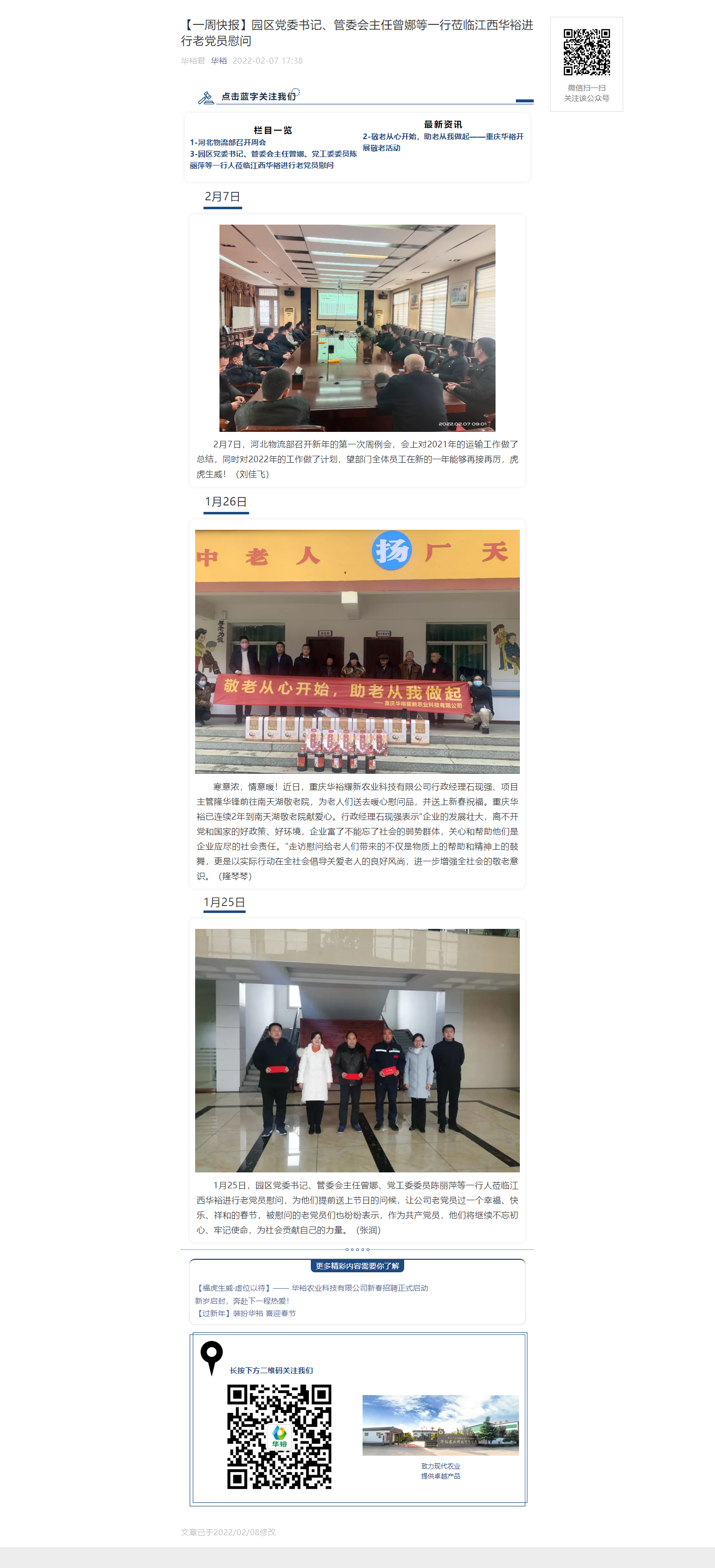 【一周快報】園區黨委書記、管委會主任曾娜等一行蒞臨江西華裕進行老黨員慰問